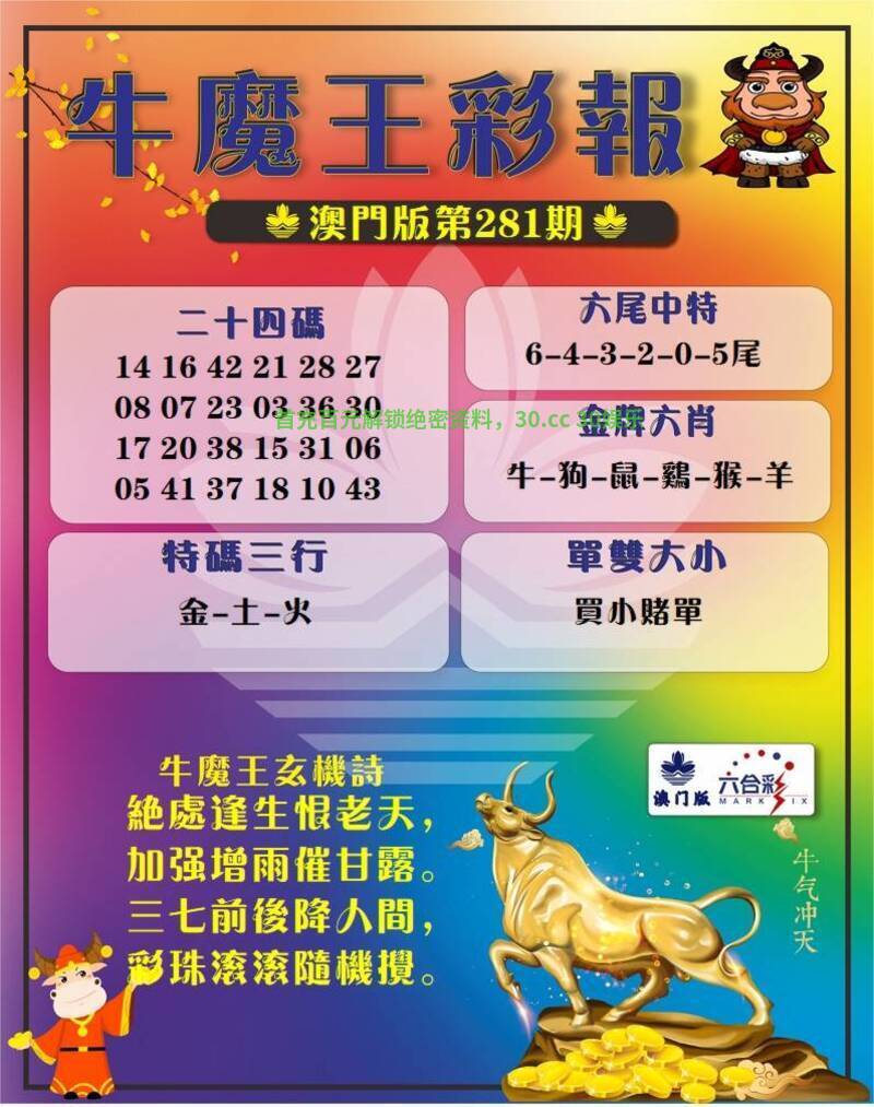 281期:七肖中特【牛鼠狗猪马猴】开:羊47中